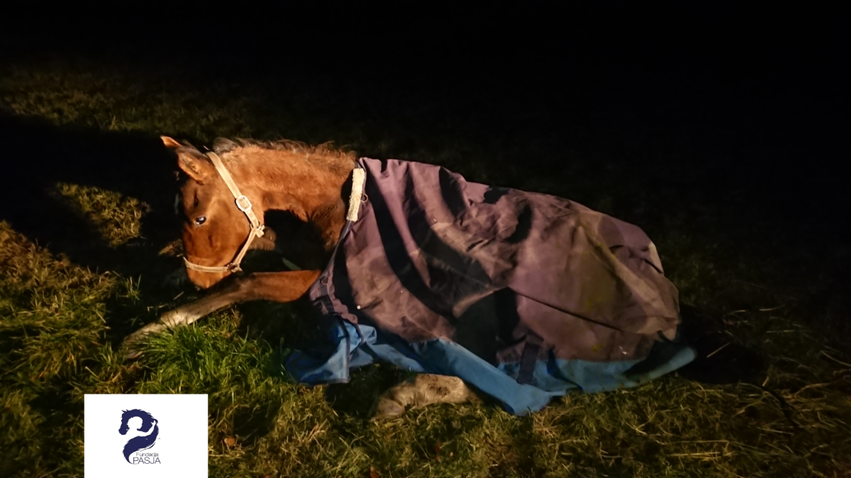 Masa kroplówek, leków, termoforów z ciepłą wodą, by ogrzać wychłodzone ciało tego konia, nieudane próby podniesienia, by postawić go na nogi- pełno osób, sprzętu, stresu i wciąż nadzieja w oku tej bezsilnej istoty.