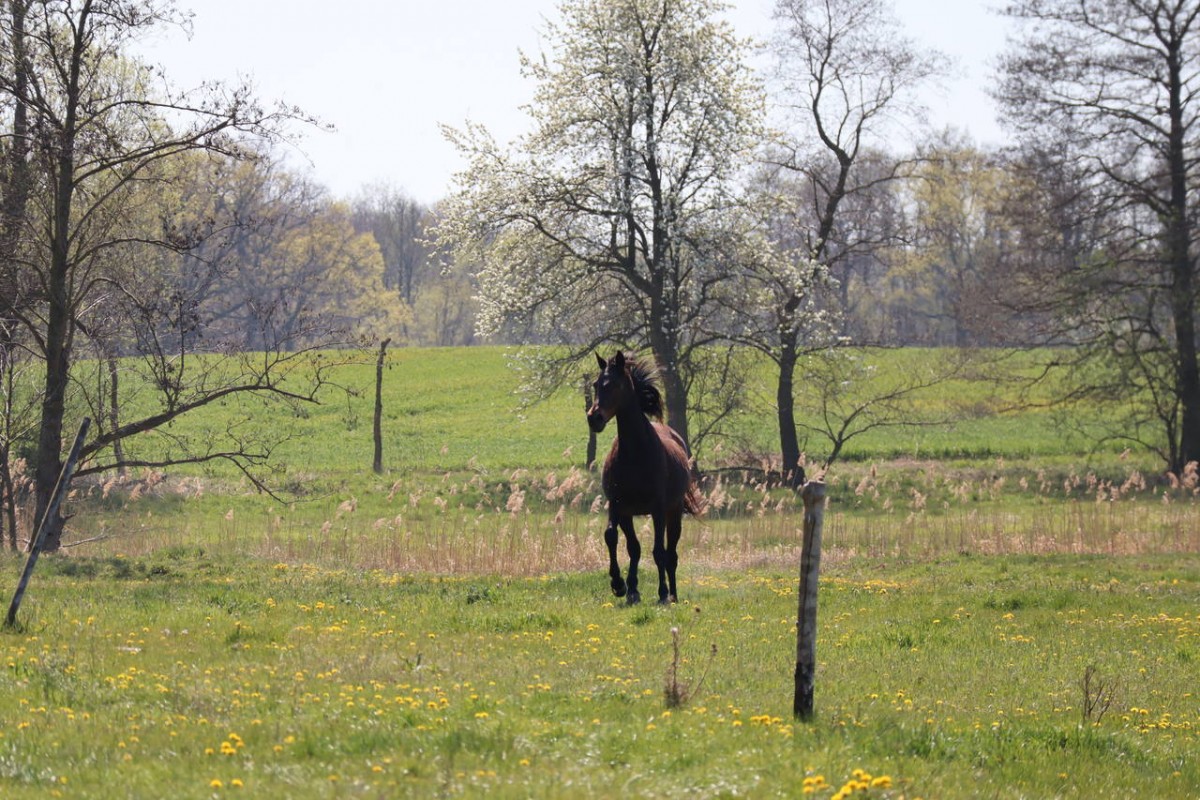 Roster stopniowo odzyskuje wolność i swobodność- z etapu wychodzenia na spacery w ręku, wreszcie doszliśmy do etapu swobodnego wypuszczania na mały padok- mamy nadzieję, że w niedługim czasie, Roster dołączy do reszty stada i lato spędzi już na ogromnych łąkach- w miejscu, które jest dla każdego konia prawdziwym rajem, a każdy dzień zamienia się w bajkę.