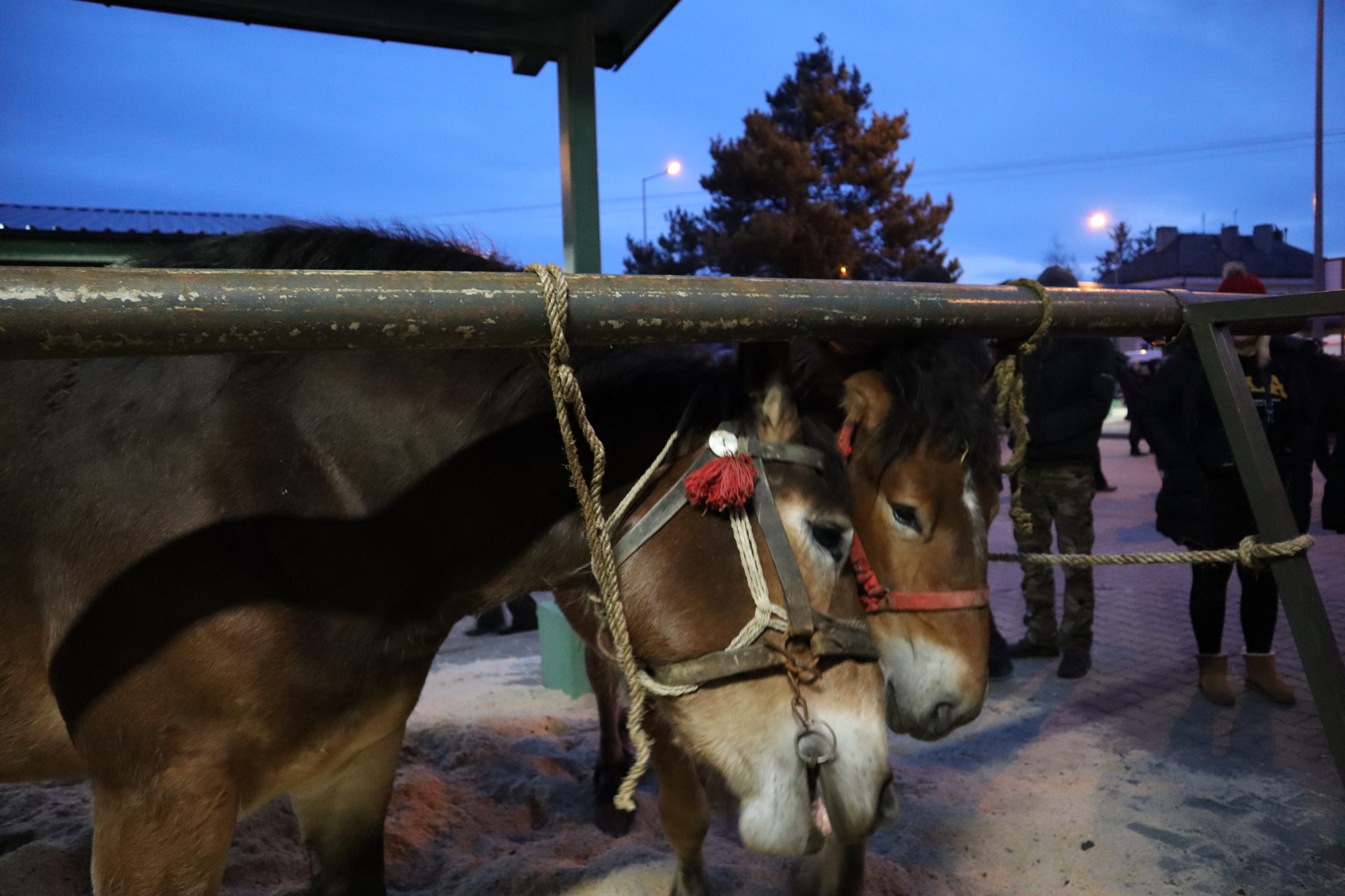 Bez wody i picia- zdecydowana większość koni na targu właśnie tak stała tam cały dzień. Pomimo dostępnego kranu, wodę i siano dostały tylko niektóre konie i były to konie, które przyjechały porządnymi transportami, konie, które przeżuwając siano, wciąż muskane były przez rękę swojego właściciela po chrapach- organizacje zabezpieczające targ, umieszczają na nim kran do pojenia koni- trudno stwierdzić, czy chodziło o spełnienie norm, czy faktyczne dobro zwierząt, które i tak w większości, mogły tęsknym wzrokiem tylko na ten kran popatrzeć- przecież niedbający właściciel nie odmieni siebie- może o tak ważne i podstawowe rzeczy, powinny dbać wyznaczone do tego osoby? I znów konie, których los ich właścicielowi jest zupełnie obojętny, pozostały same… ????
