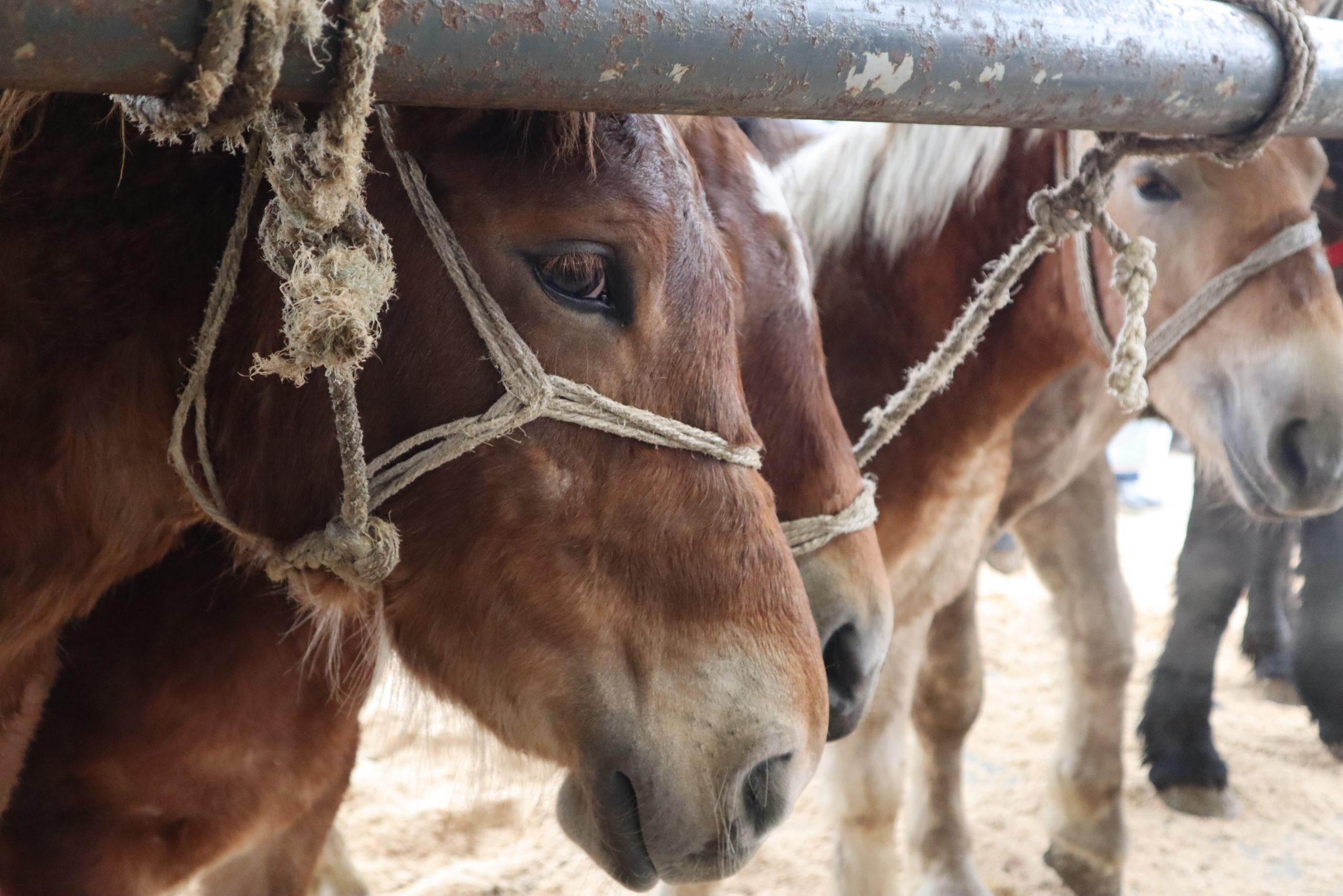 Wyładowywanie z transportu- plac do tego przeznaczony został zamknięty, a decyzja tłumaczona jest tym, by konie nie odczuwały dodatkowego stresu- dla koni, których właściciele mieli podejście i doświadczenie, jak bezpiecznie konia wyładować, była to naprawdę dobra decyzja… jednak znów ktoś zapomniał o grupie koni, która jedyne na co mogła liczyć, to na jedno wielkie piekło przy wyładunku. Większość koni, patrząc na ruchy i podenerwowane zachowanie swojego właściciela, wpadała w jeszcze większą panikę- niektóre konie potrafiły tak zacząć się szarpać, że ich transport uległ uszkodzeniu ( rampa dostępna na placu również), niektóre wyskakiwały, a niektóre bezwładnie spadały z wysokości- niektóre konie, przy wyładunku, zrobiły sobie krzywdę- resztę dnia stojąc z poranionymi nogami lub z sączącą się z pyska krwią( nieliczne konie, ale o nich również należy wspomnieć)